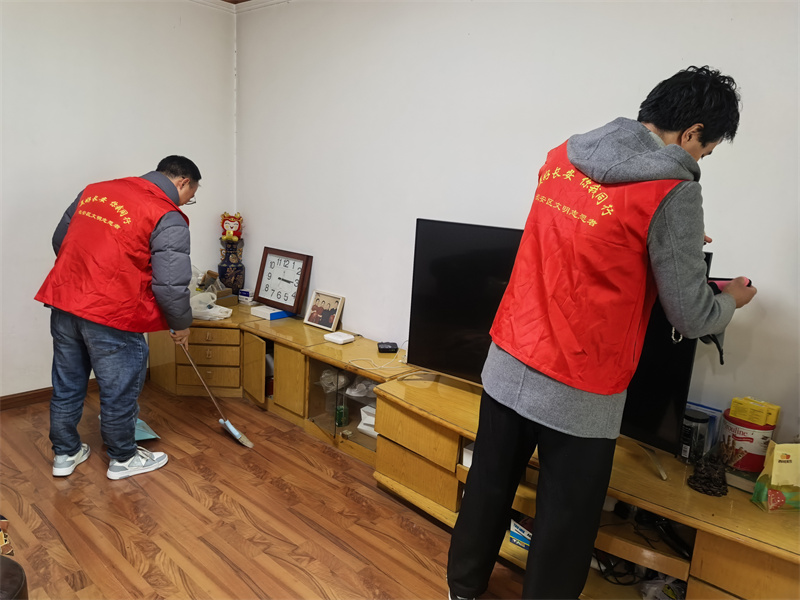 活動中,志愿者們先后走進85歲獨居老人章玉華和81歲獨居老人唐朝科家中。大家分工明確,配合默契,手持掃帚清掃地面,擦拭門窗玻璃,幫助老人整理房間雜物。經過一番辛勤勞動,家中原本積塵的角落變得干凈整潔,居室環境煥然一新。在做好基礎衛生清潔的同時,志愿者們更注重細節關懷。他們化身“托尼老師”,搬來小板凳為老人理發,耐心地為老人修剪指甲。大家一邊陪老人拉家常,一邊細致地服務,讓平日里冷清的小屋充滿了歡聲笑語。此外,志愿者們還主動檢查了老人家中水電設施,排查安全隱患,切實保障老人的居家安全。